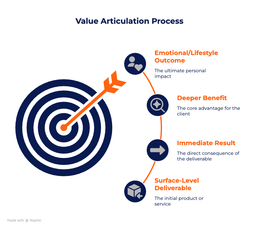 So here's my no-BS template that transforms your sales conversations from boring feature lists into powerful transformation stories that have prospects reaching for their credit cards.